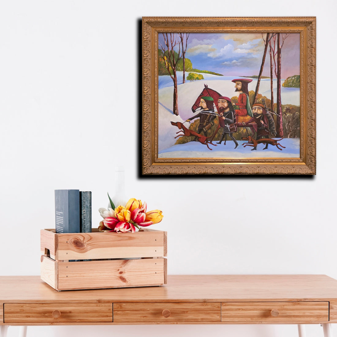 Set in an ornate golden frame, the Chase Wall Art blends traditional craftsmanship with contemporary creativity, making it a striking centerpiece for living rooms, lounges, or art collections. More than décor, it’s a conversation piece that reflects passion, motion, and human connection perfect for collectors and those who appreciate meaningful, story-driven art.